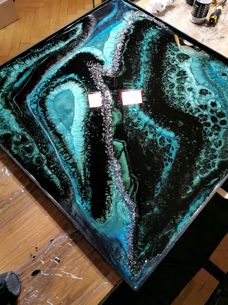 Every piece is created entirely by my own hands - from making the solid wooden frame to the final polishing. I don't use prefabricated parts. I build layers. I combine crystal resin, glass, pigments, and 3D printed parts to achieve fascinating spatial effects and structures that change with the light. It is a process where precise craftsmanship meets modern chemistry, technology, and design. The result is a museum-quality artwork that is luxurious, durable, and absolutely unique.